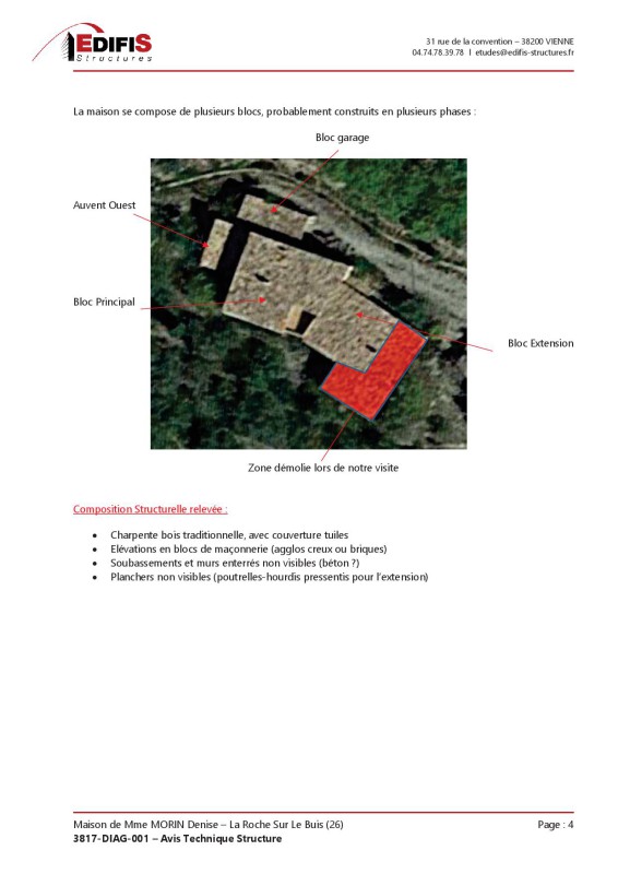 Avis technique sur plusieurs désordres structurels (tassements de fondations, détachements d'extensions, basculements de parties d'ouvrages).