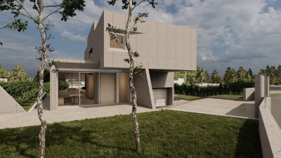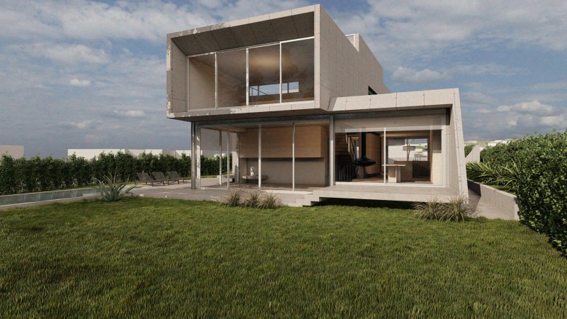 Construction d'une maison contemporaine sur 3 niveaux avec piscine entièrement en béton apparant lazuré
